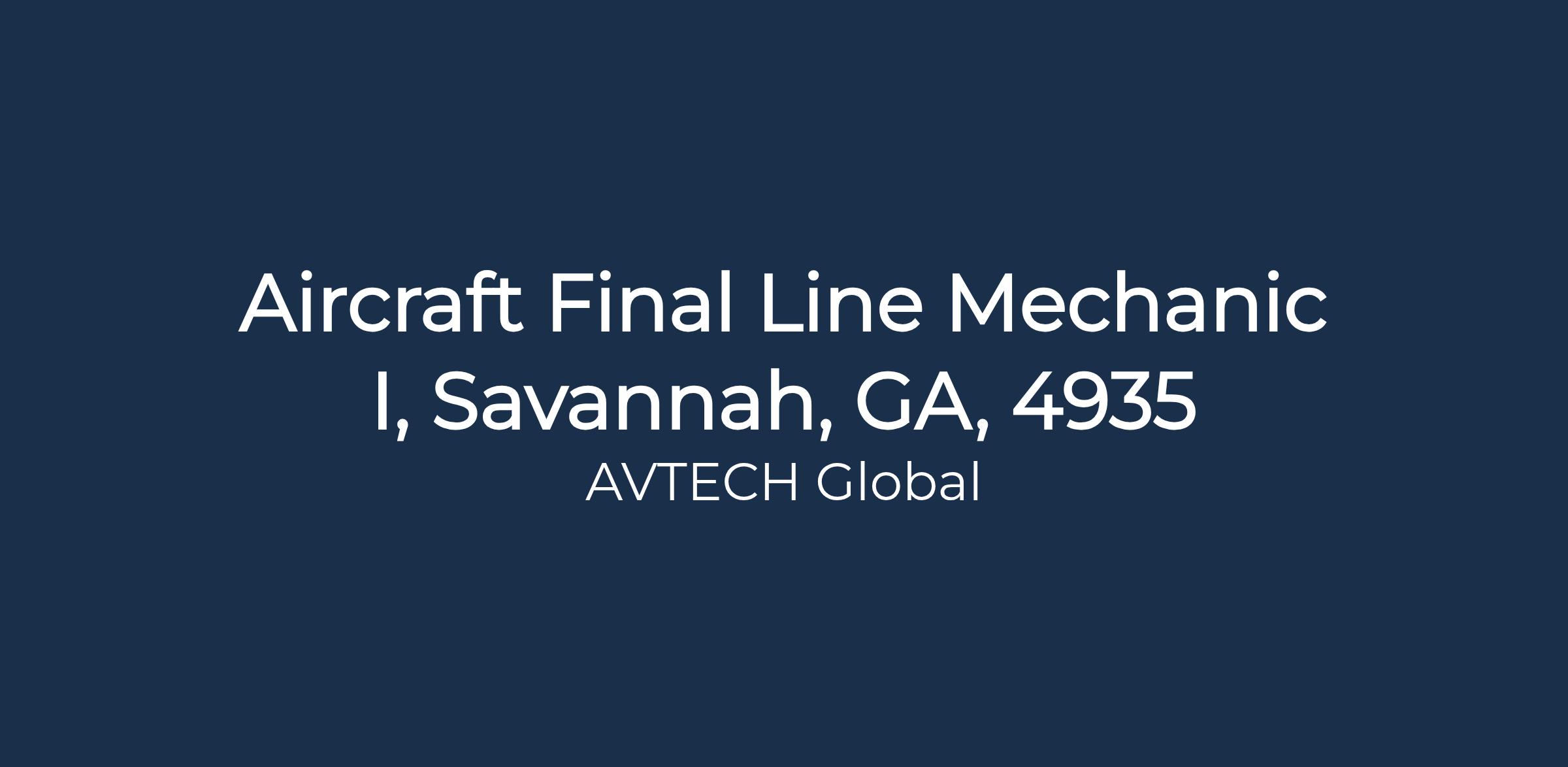 AVTECH Global is looking for a Final Line Mechanic I in Savannah, GA.