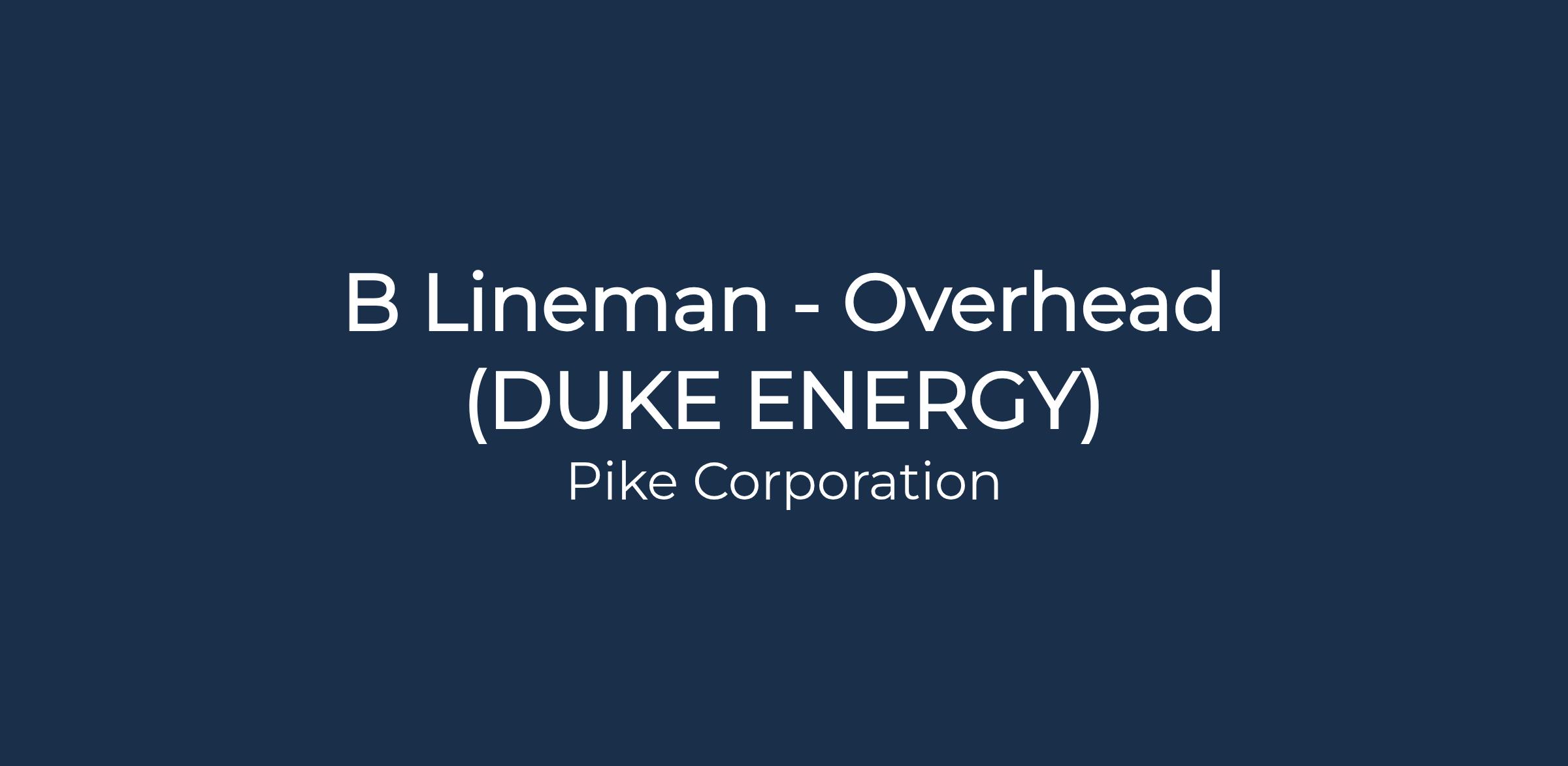 Position Summary: The Class B Lineman - Overhead is a semi-skilled position in the construction, maintenance and repair of electrical overhead distribution systems. This position works at various locations and may also be required to travel to another state depending on customer demands.