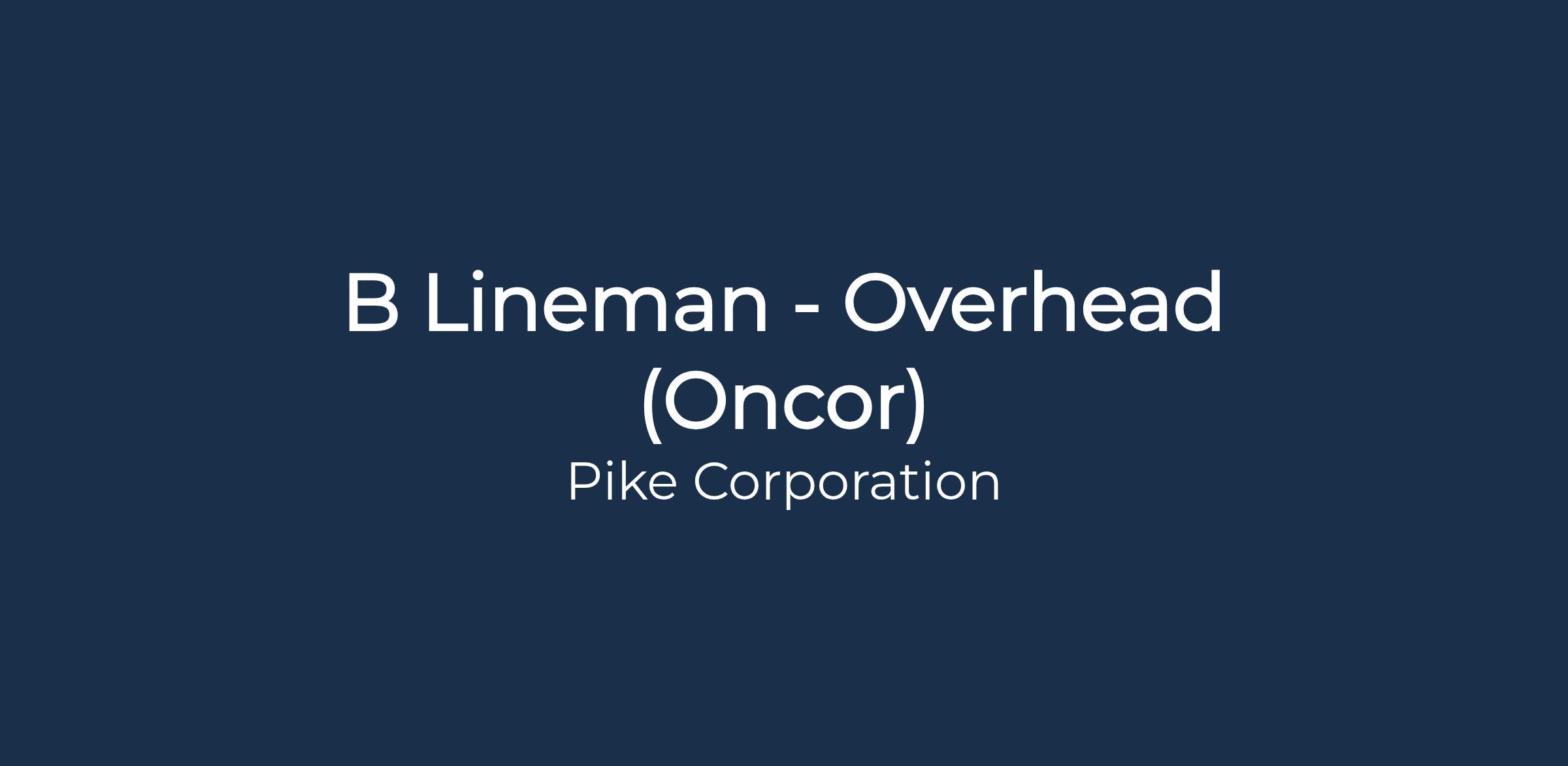 DescriptionPosition Summary: The Class B Lineman - Overhead is a semi-skilled position in the construction, maintenance and repair of electrical overhead distribution systems. This position works at various locations and may also be required to travel to another state depending on customer demands.