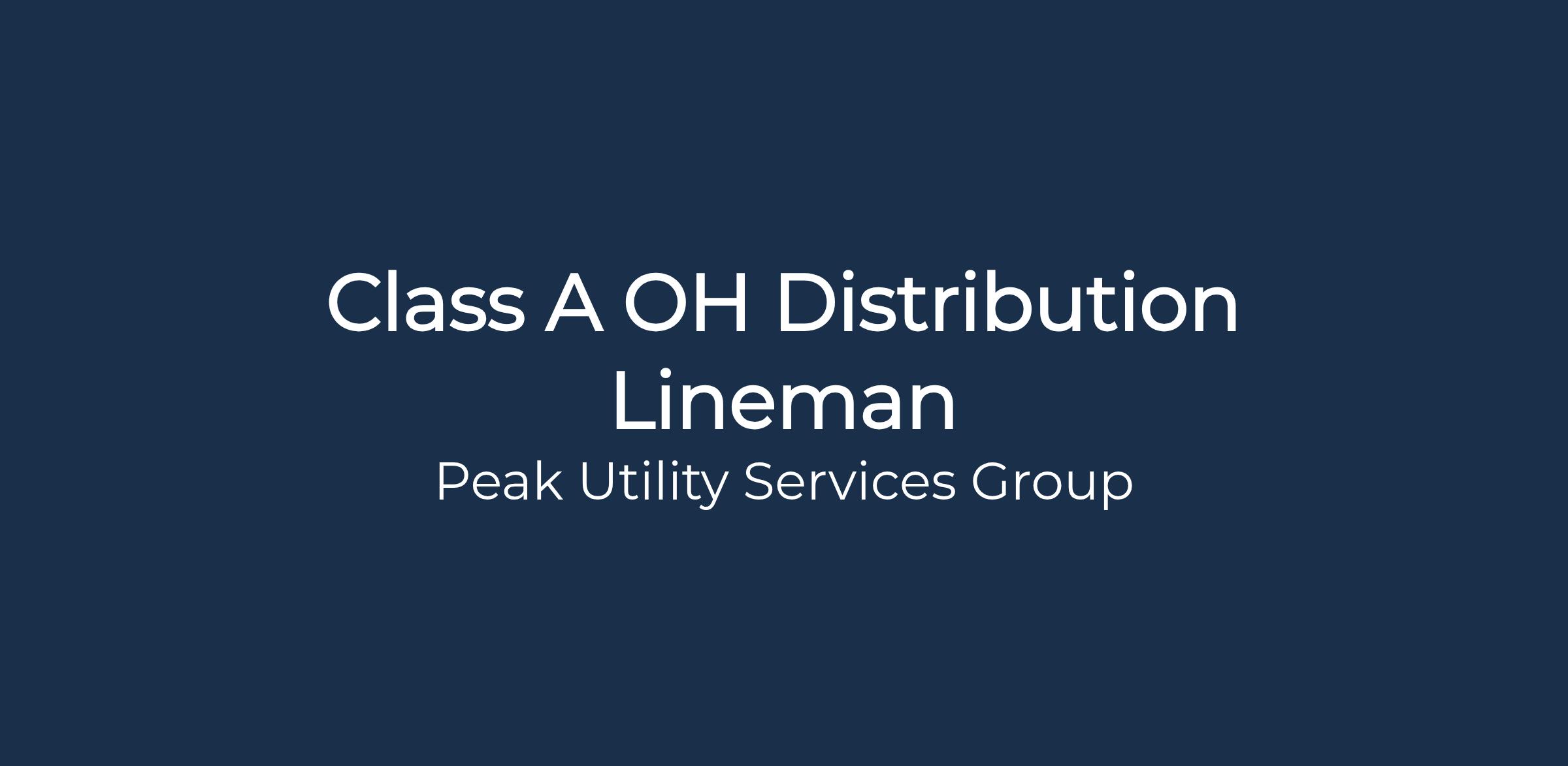 Position Title: Overhead Distribution Lineman – A Class