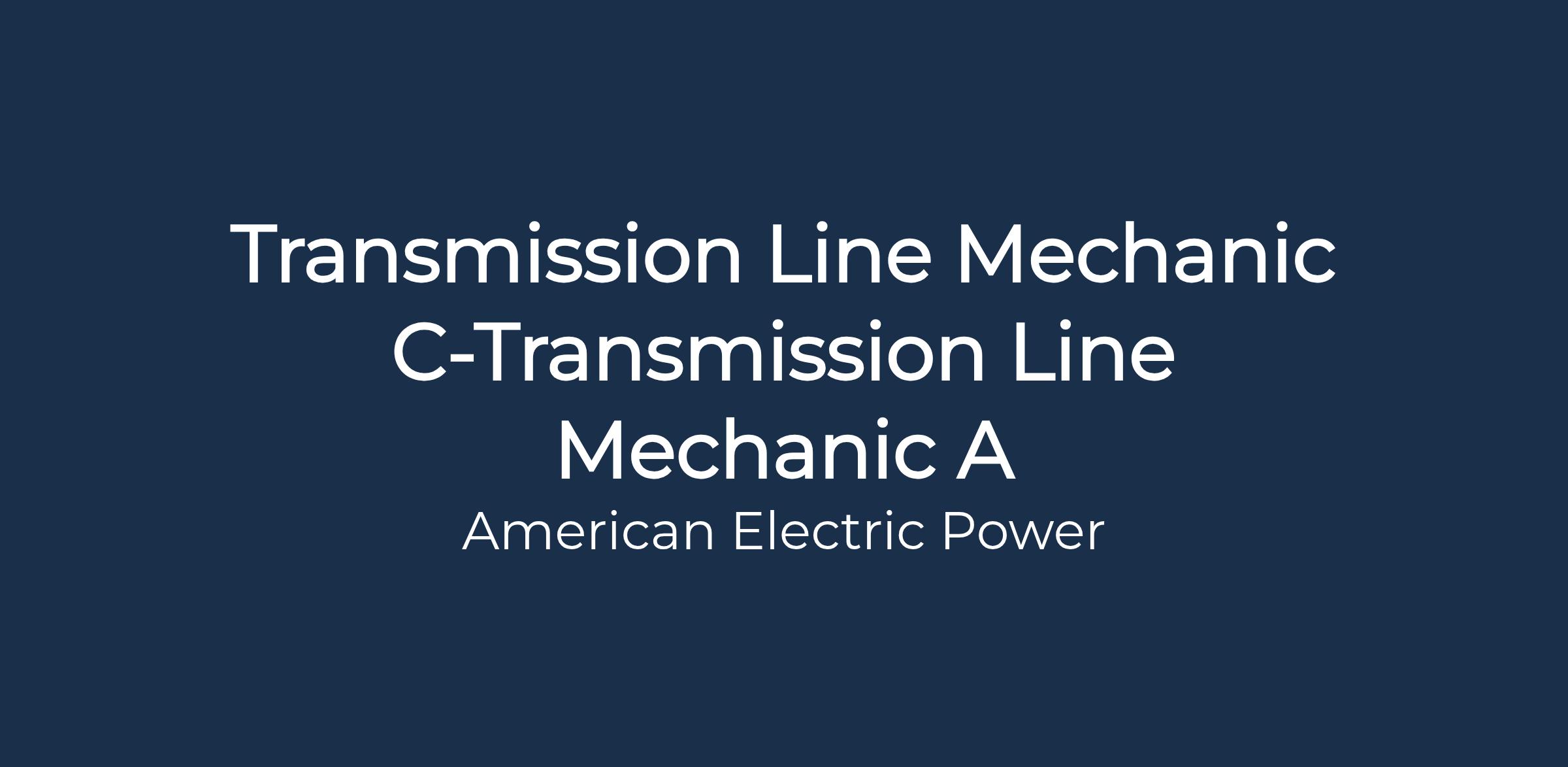 AEP is Seeking a Transmission Line Mechanic C - A to become an integral part of the Transmission Team.